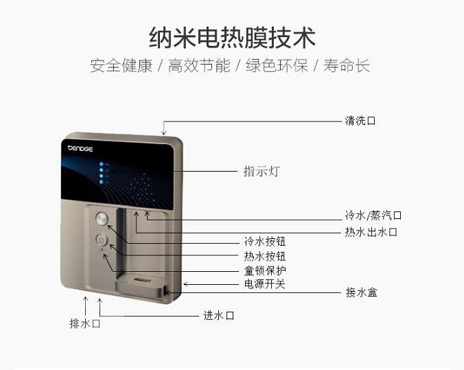 恬凈速熱管線飲水機TG-G5,采用納米電熱膜加熱技術(shù),有效殺死水中的細菌微生物,防治二次污染。3秒速熱,隨時可喝上熱水。恬凈速熱管線飲水機TG-G5自帶防干燒系統(tǒng)與童鎖,安全省心。