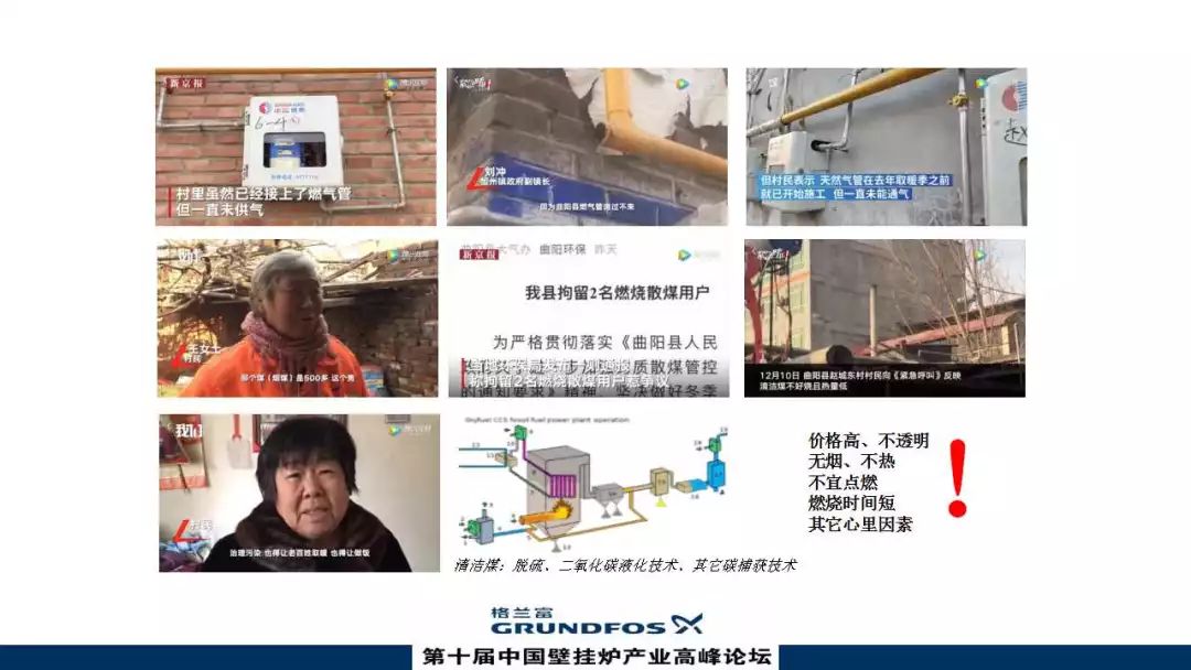 從新京報的報道可以看到目前存在的一些問題,如現(xiàn)在很多地區(qū)雖然建了燃?xì)夤艿?,但不通燃?xì)?,還有很多農(nóng)村實行的清潔煤。清潔煤是直譯過來的,有兩個解讀:一是法國科學(xué)家認(rèn)為清潔煤是指如何用系統(tǒng)性的設(shè)備,更好地、更有效、更低排放燃燒煤炭。另一種理解是將煤燃燒的CO2液化,然后深埋地底,讓燃煤過程中的CO2做到零排放。