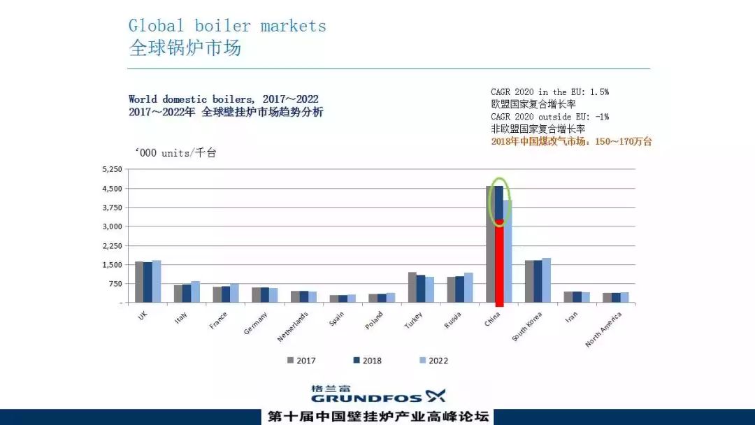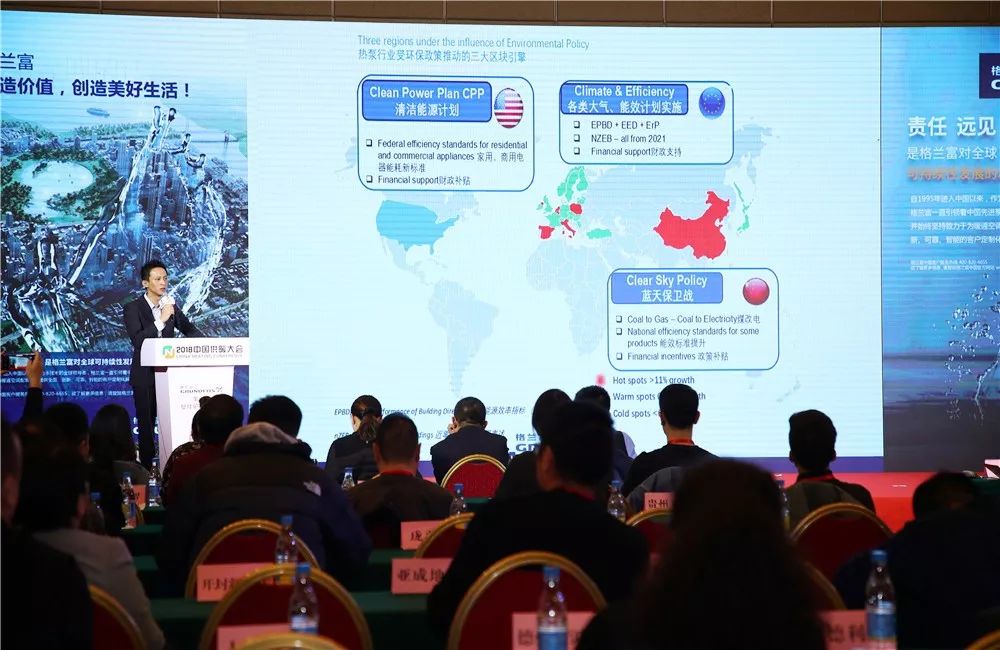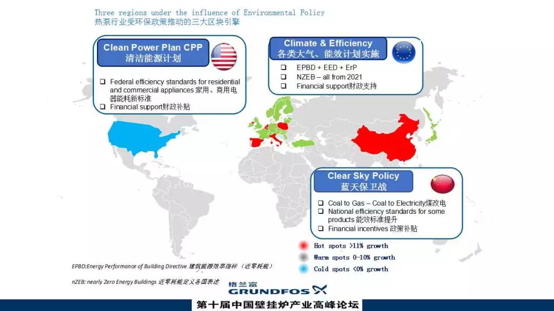 談到區(qū)域市場和熱泵行業(yè)的增速,全球有三大區(qū)塊受到推動,從左到右分別是美國、歐洲、中國。