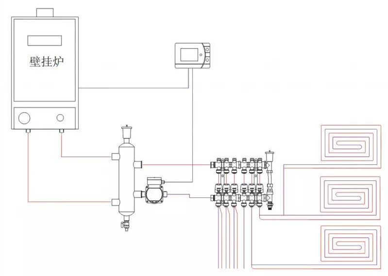 那么,是否在壁掛爐和地暖之間安裝一個(gè)混水裝置就可以實(shí)現(xiàn)系統(tǒng)合理呢?